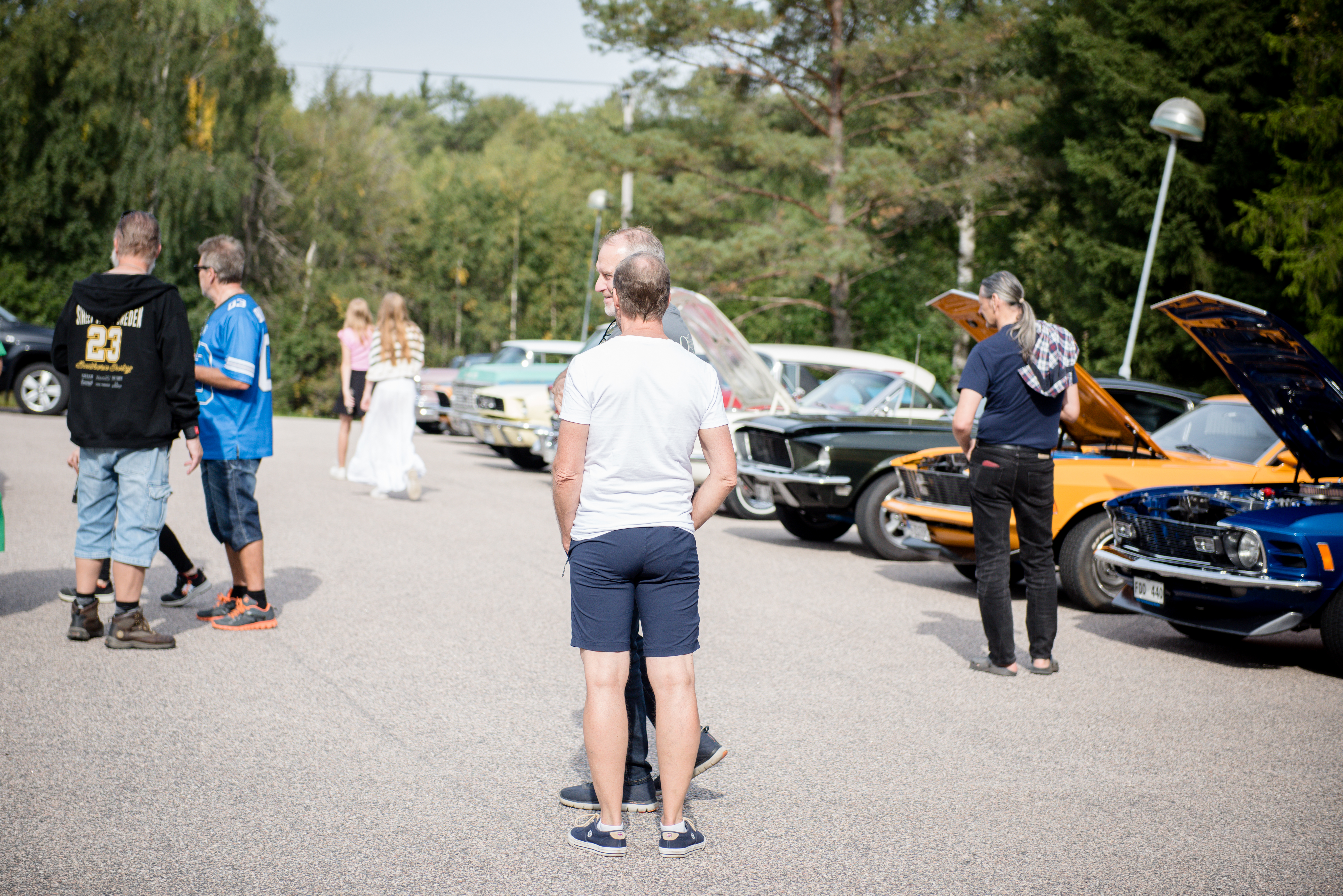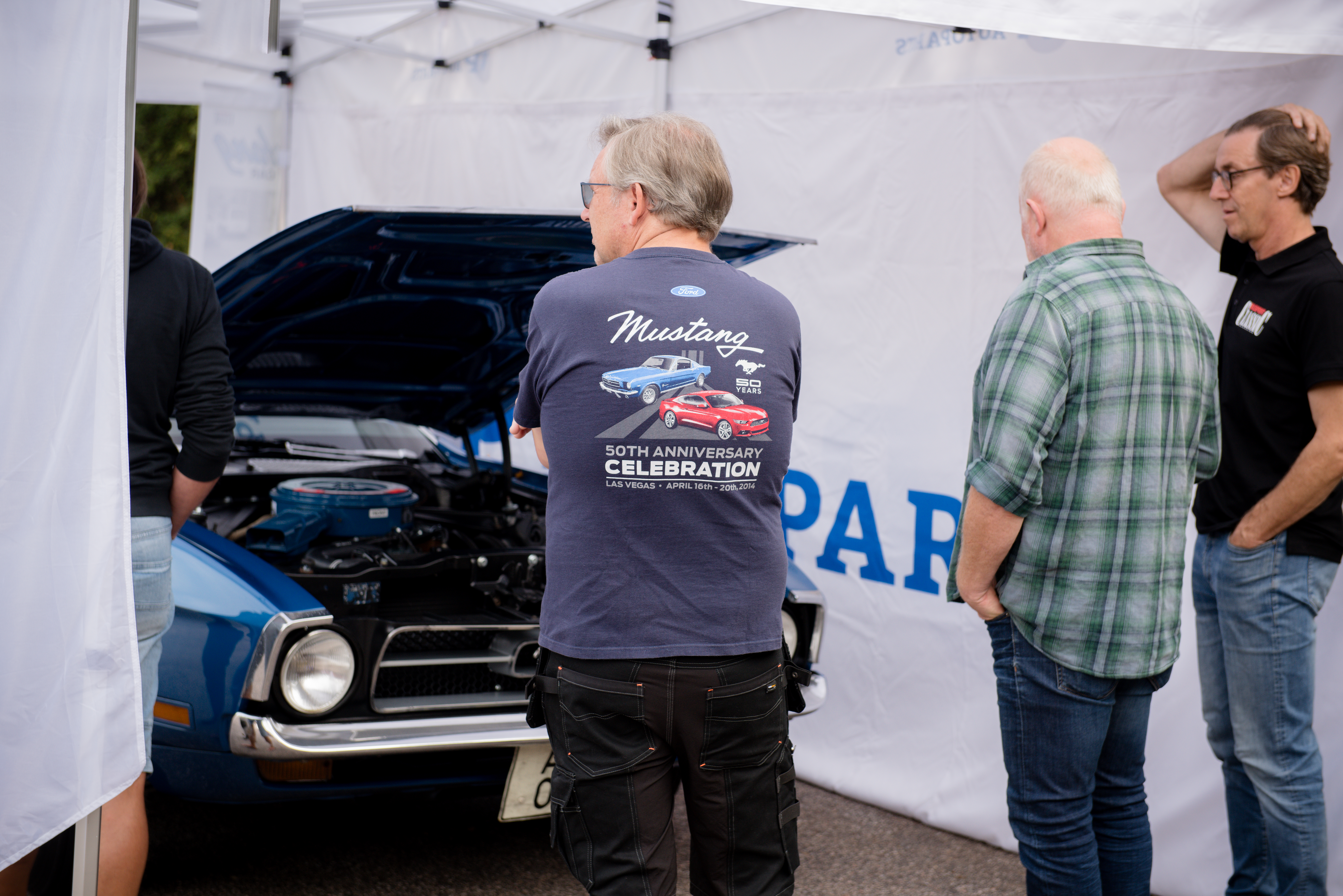 En extra speciell besökare var den kända flyktbilen från Norrmalmstorgsdramat. Den blå Mustangen kom i sällskap med våra vänner på Bilsport Classic, som också delade ut fina priser till några av bilägarna på plats. Mustangen drog stort intresse till sig. Inte nog med dess spännande historia – den är också riktigt fin att kolla på! Du kan läsa mer om flyktbilens historia och renoveringsresa här