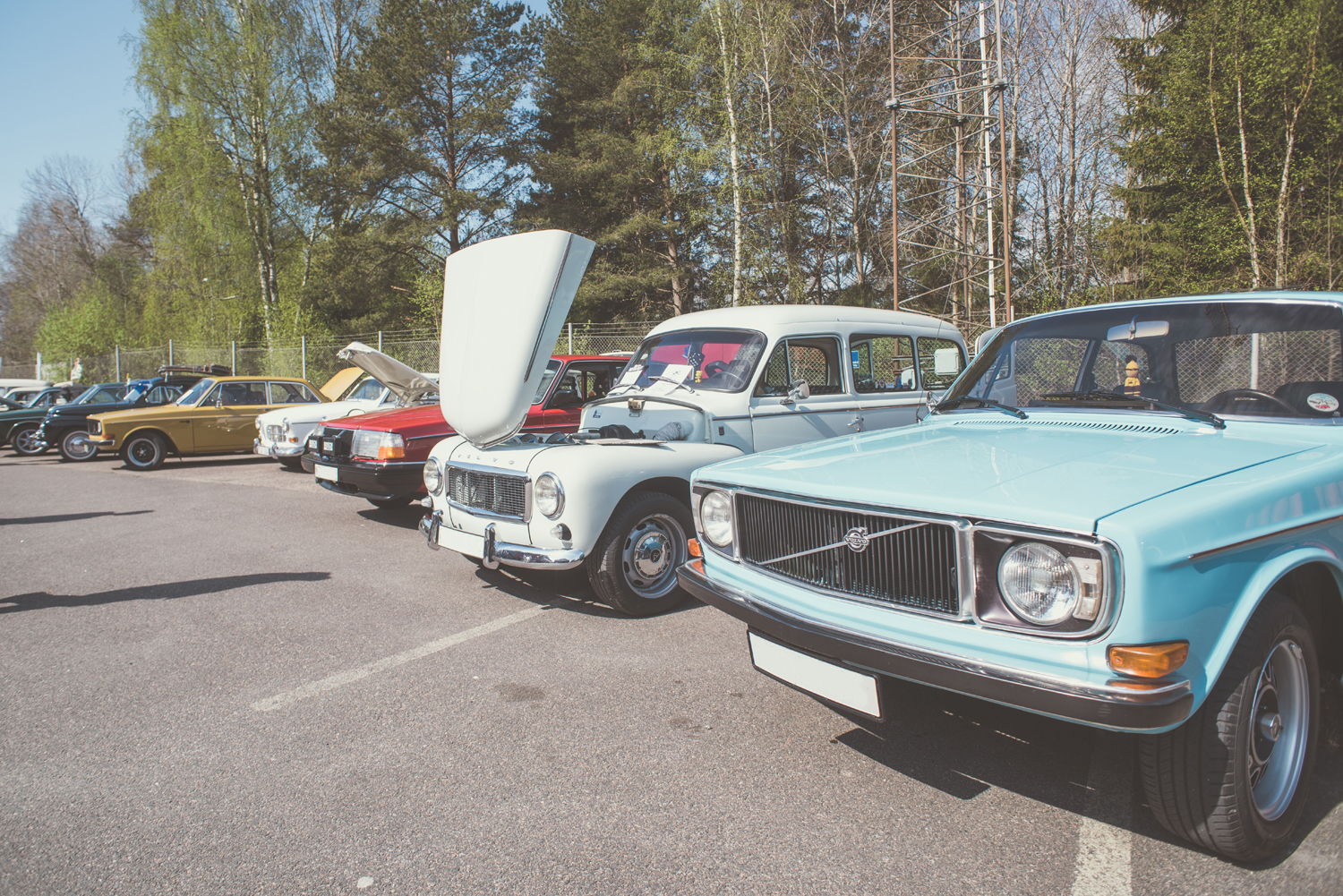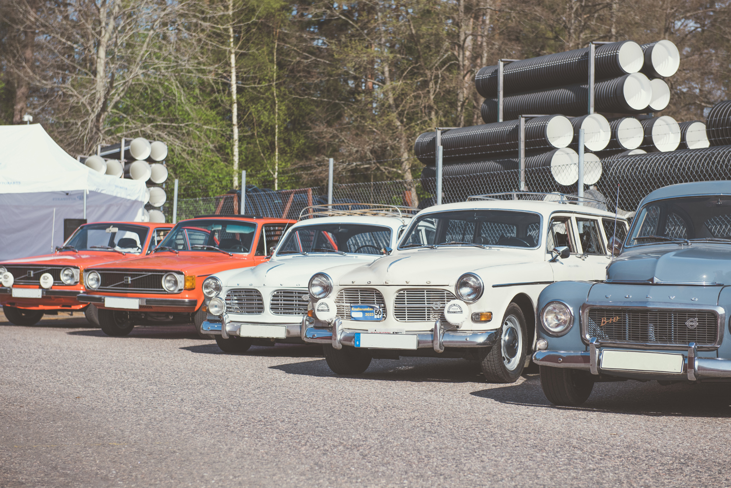 Klassiska Volvobilar i mängder